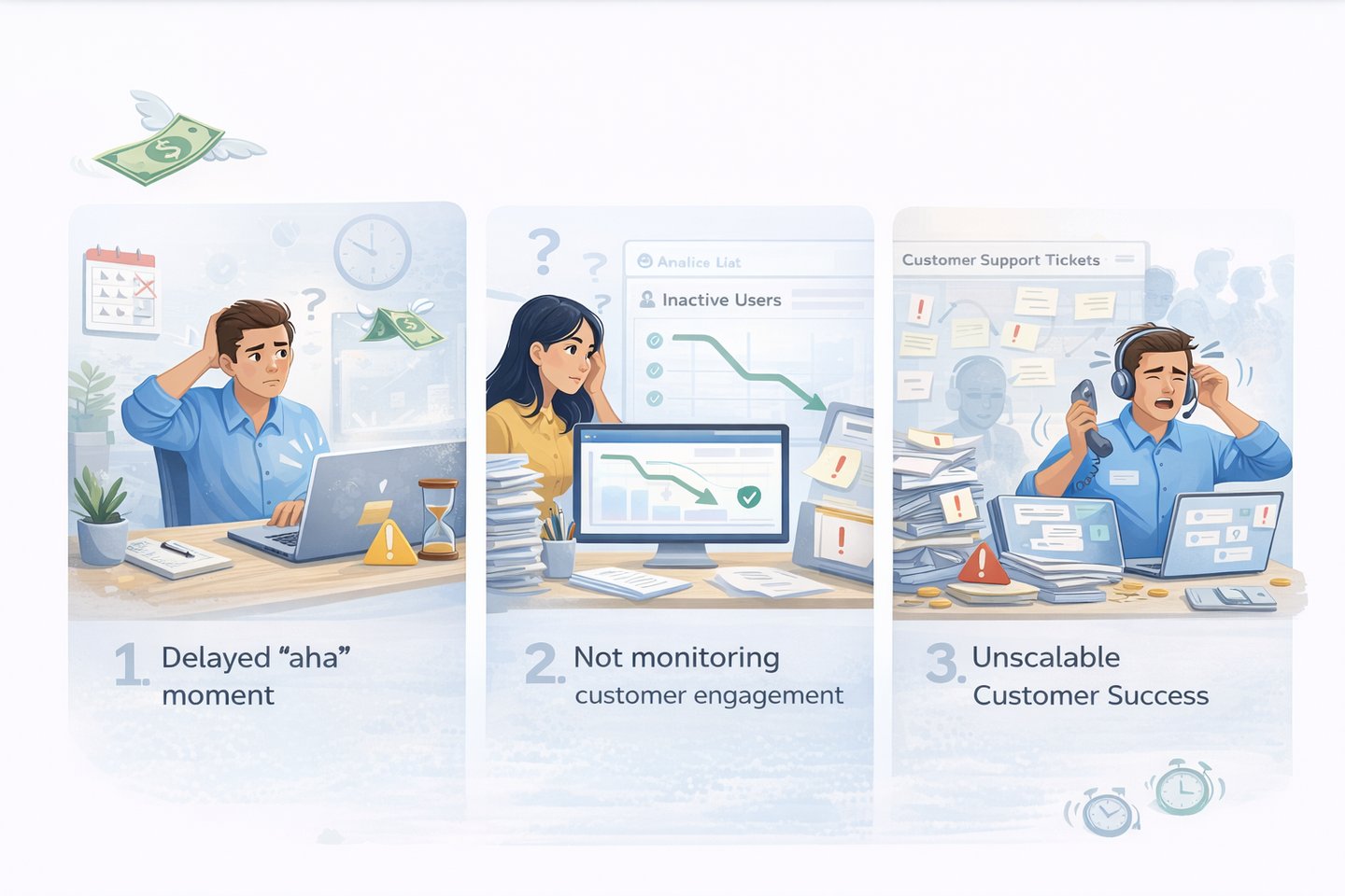 Customers leave because they don’t see value fast enough. Without proper guidance, they disengage and churn—not because the product isn’t great, but because they weren’t handheld through the process.